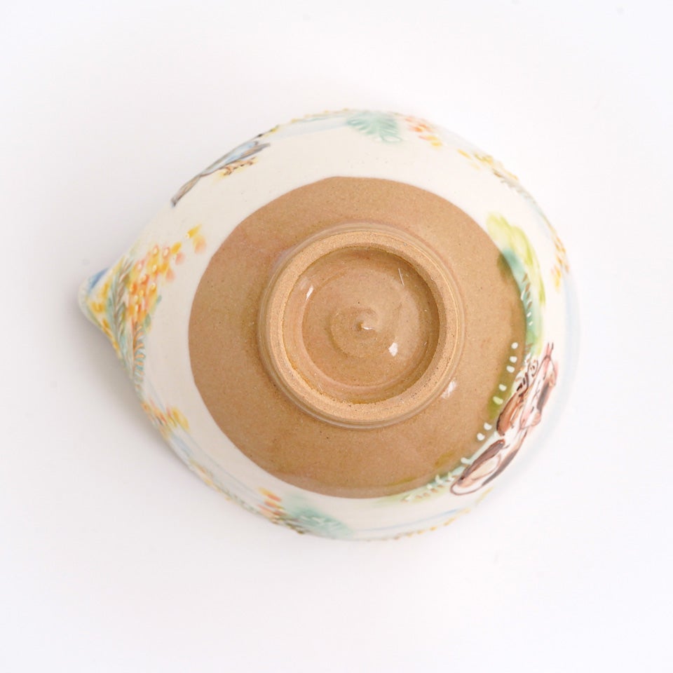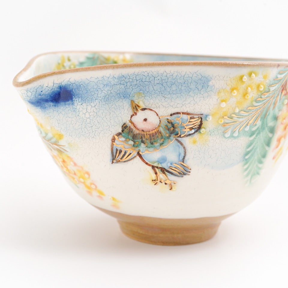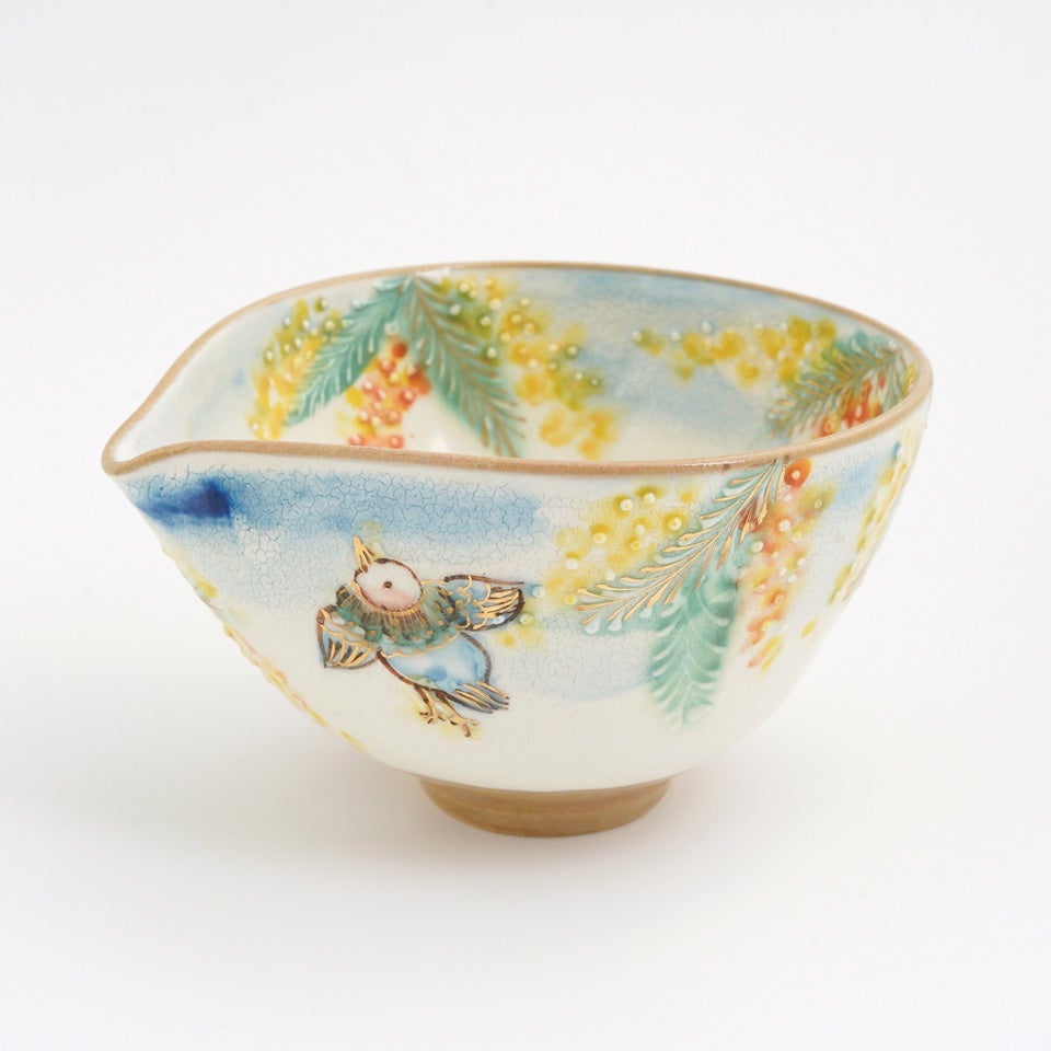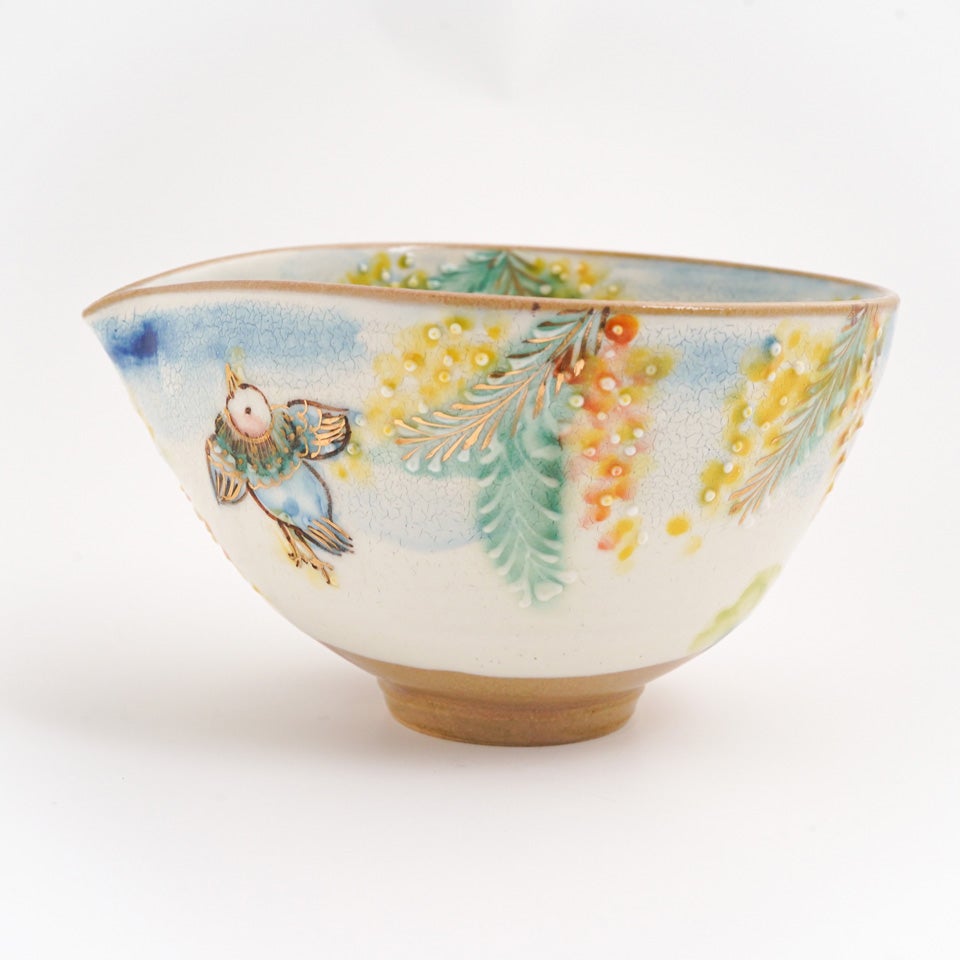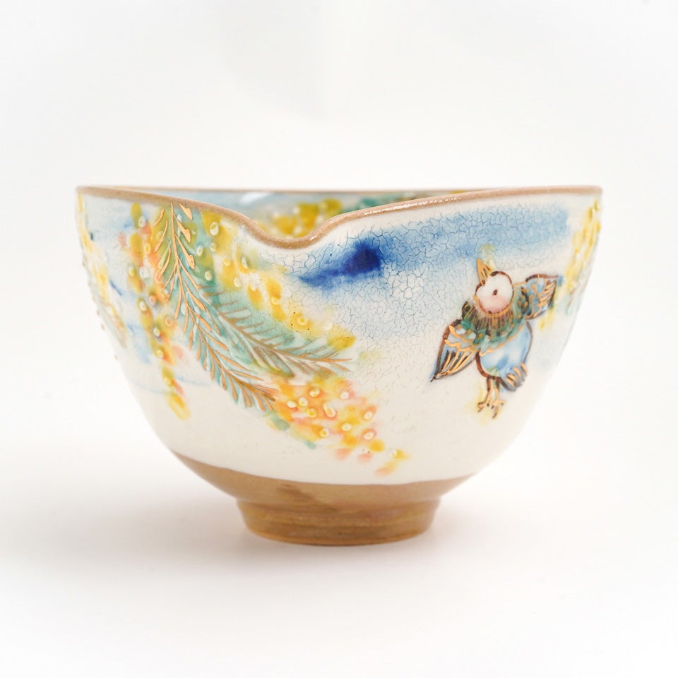 菊の花をかたどり、内外に小花柄を描いた可愛らしい器です。使い勝手がよく、華やかさを持ちながらも気取らない雰囲気です。