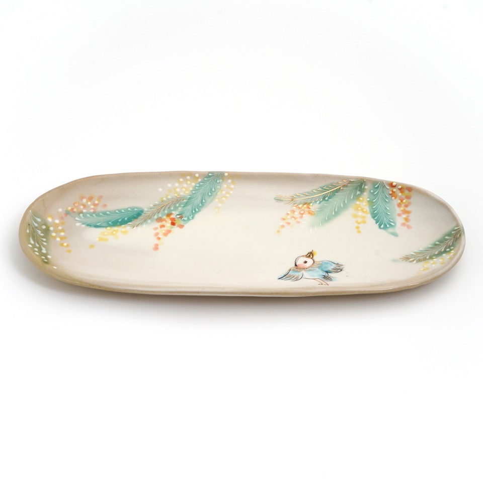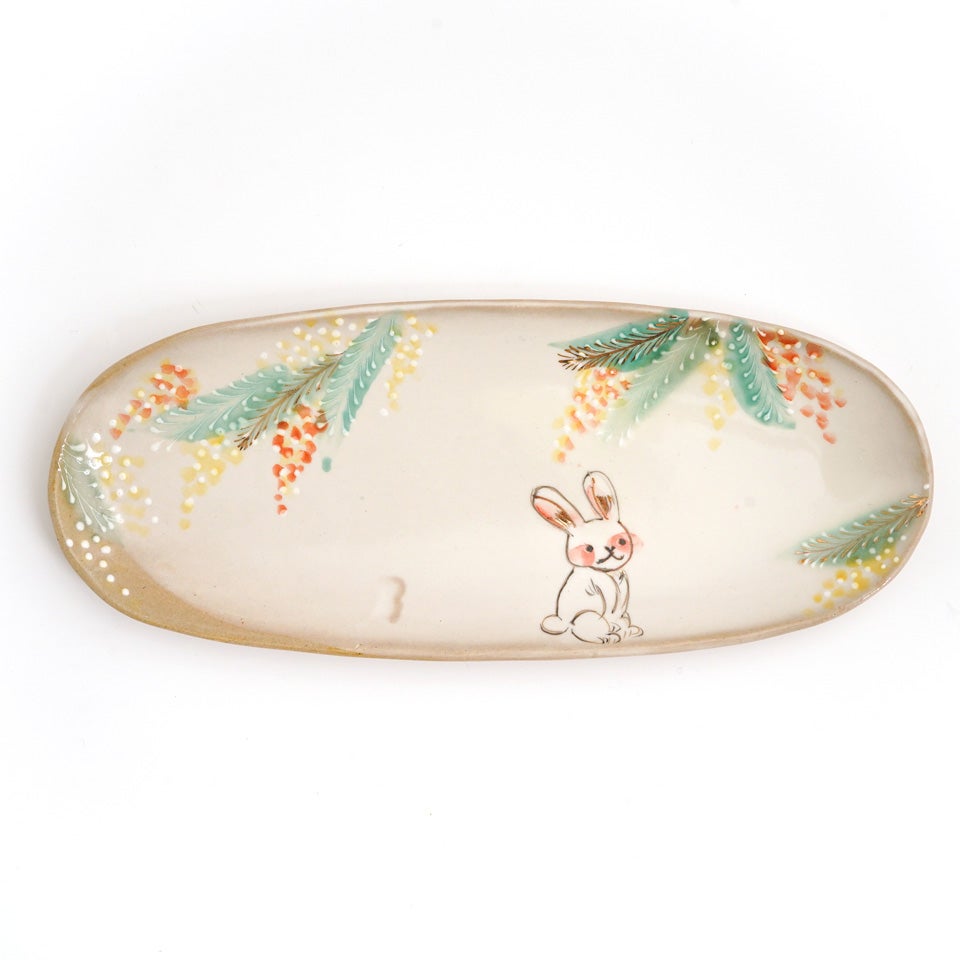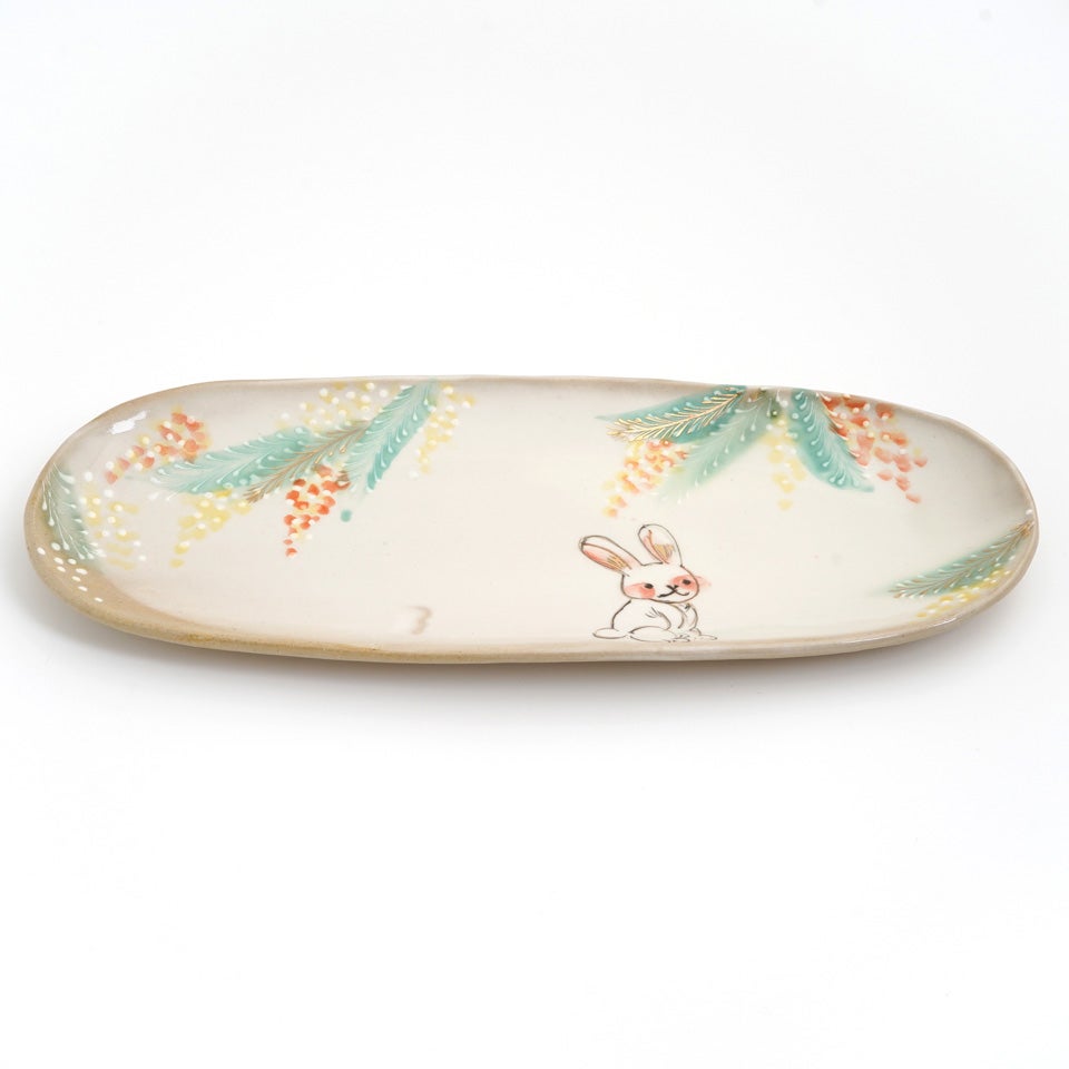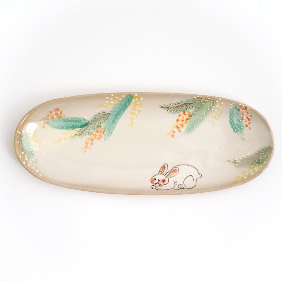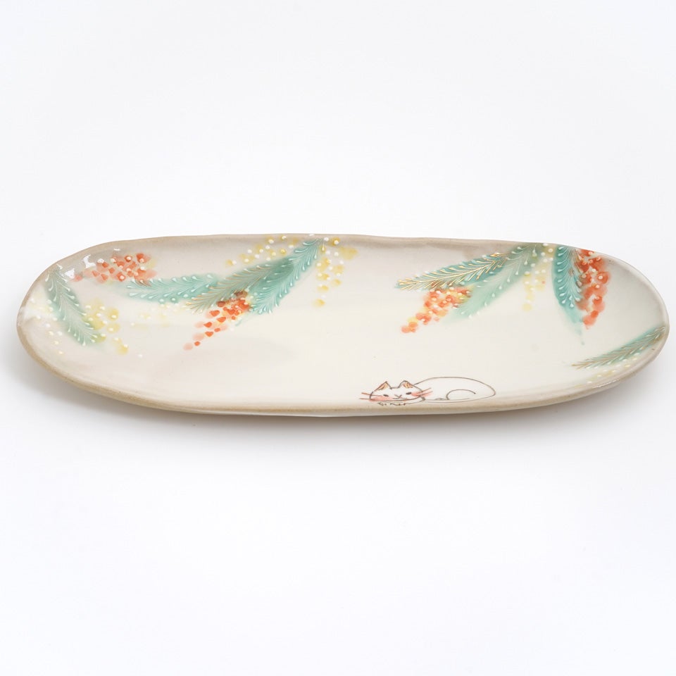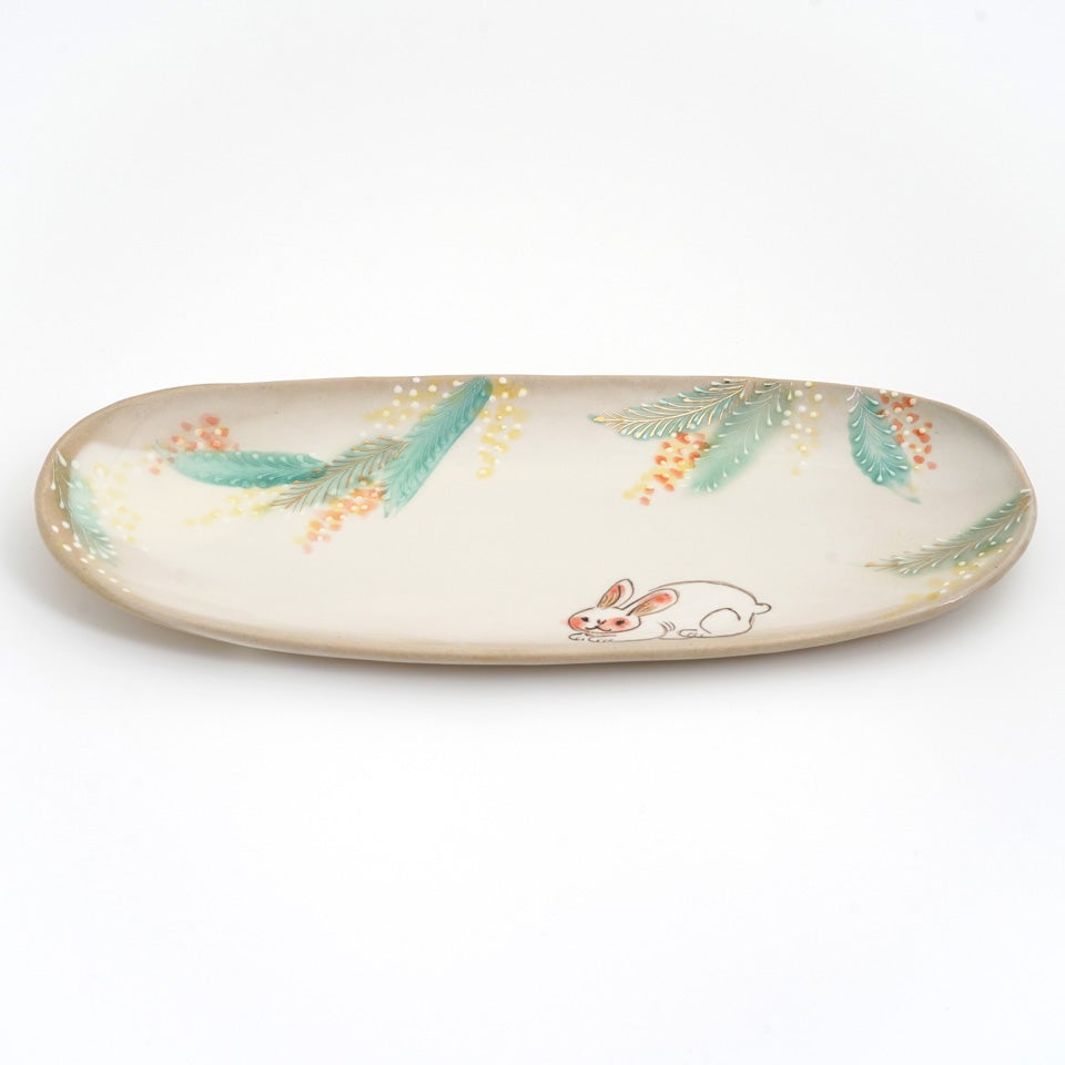作品にはイッチンという技法が施され、可愛らしさがたっぷり詰まっています。淡く柔らかい色合いは、筆で色を重ね着彩することで生みだされています。