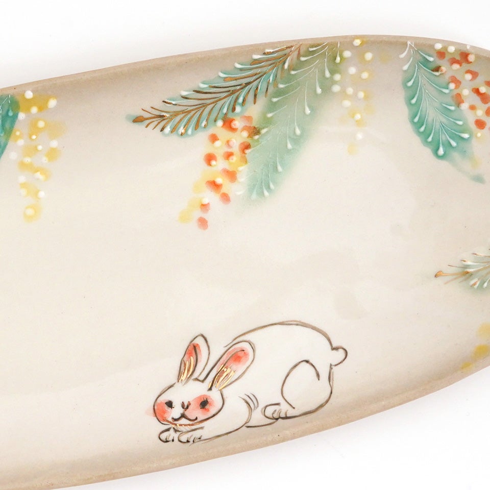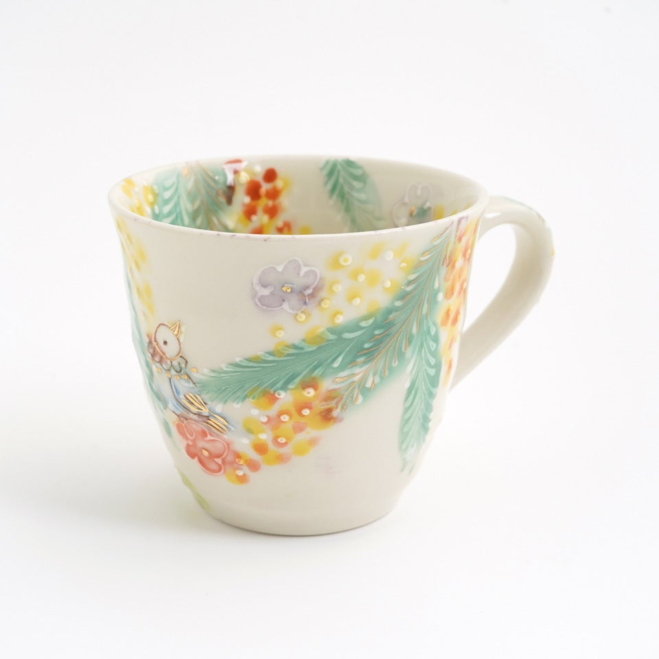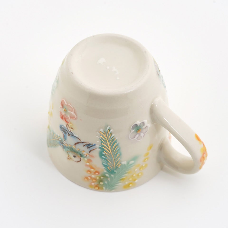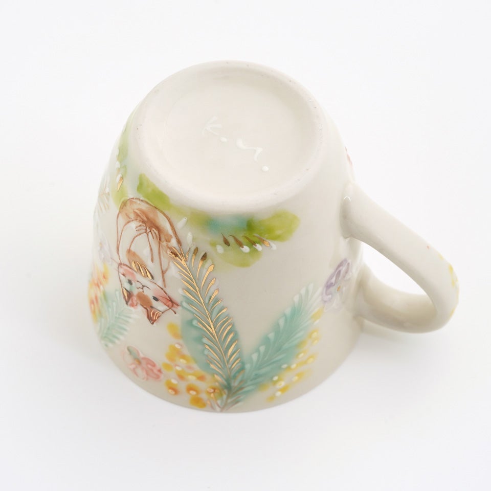 元々京都の窯元で絵付師をされていた内藤さんは、花や鳥の文様を描くことが多かったとのこと。ご自身が犬を飼われていることもあり、可愛らしい動物たちがあちらこちらからのぞいています。楽しい気持ちや癒しをお届けしたいという、内藤さんのお気持ちが伝わってくるようです。