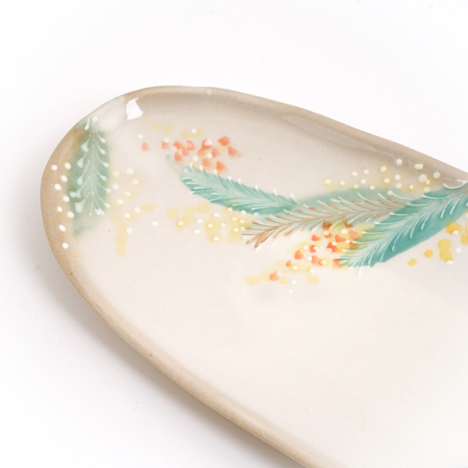 ※イッチン:陶磁器の装飾技法のひとつで、ケーキ地の上に生クリームを飾りつけていくように、 スポイトに入れた泥で生地の上に模様を描くことを意味します。