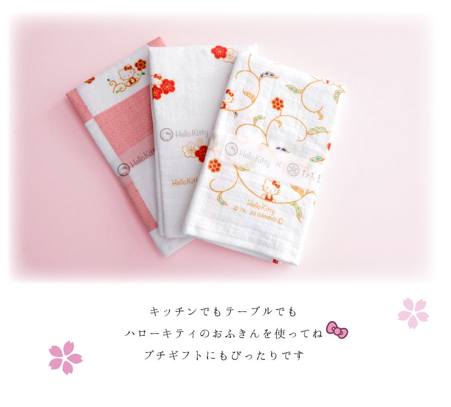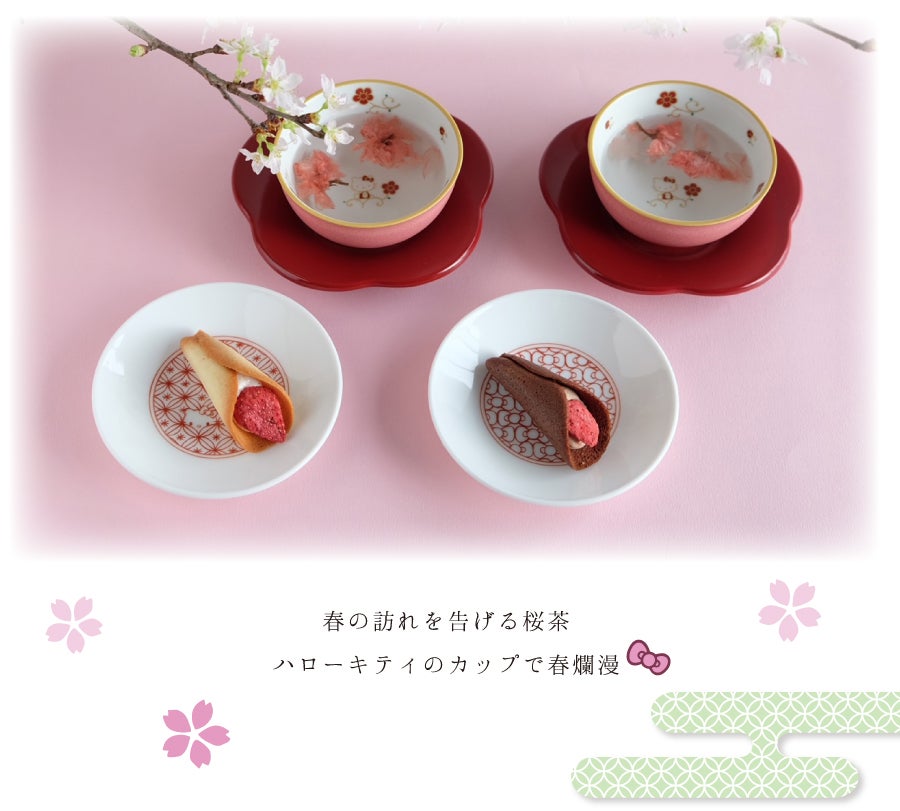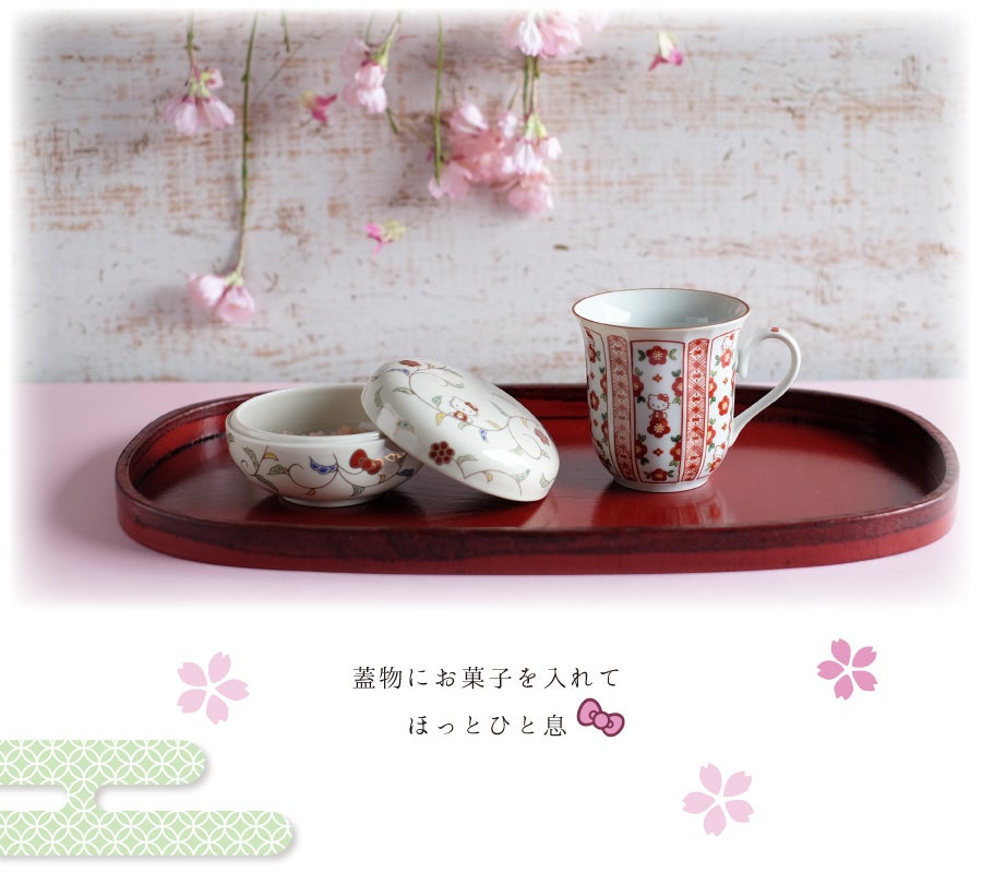 ハローキティと一緒におうちでお花見茶会はいかが? ハローキティのかわいいうつわとおいしいお菓子があれば、花が咲いたようにはなやいだ気持ちに。心もうきうき楽しい時間をお過ごしください。 ハローキティ 色唐草蓋物〈1個〉 ハローキティ 赤絵間取マグ〈1個〉 ハローキティ 染付間取マグ〈1個〉 朱塗梅 茶托〈5枚〉 越前塗 ハローキティ おふきん(花絵) ハローキティ おふきん(梅文) ハローキティ おふきん(色唐草) ⓒ2021 SANRIO CO., LTD. APPROVAL NO. L614465 たち吉×ハローキティコラボ商品ページはこちら