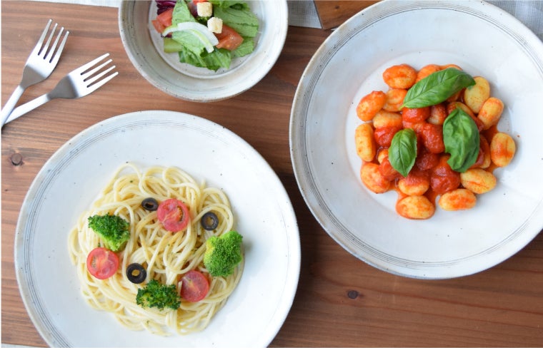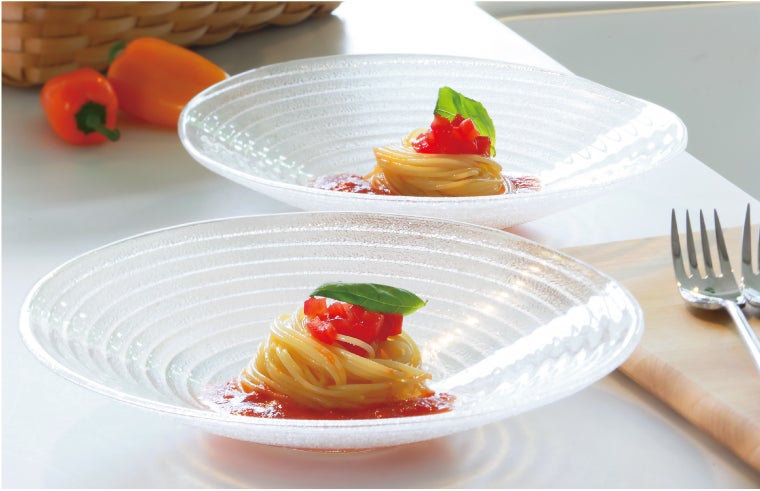 素材や色合いを生かして、幅広いバリエーションが楽しめるパスタとうつわの組み合わせ。陶器のうつわに盛るとあたたかみのある一品に、ガラスや磁器は、彩りを楽しむパスタと相性抜群です。旬を楽しむパスタにぴったりな、様々な素材のうつわを集めました。