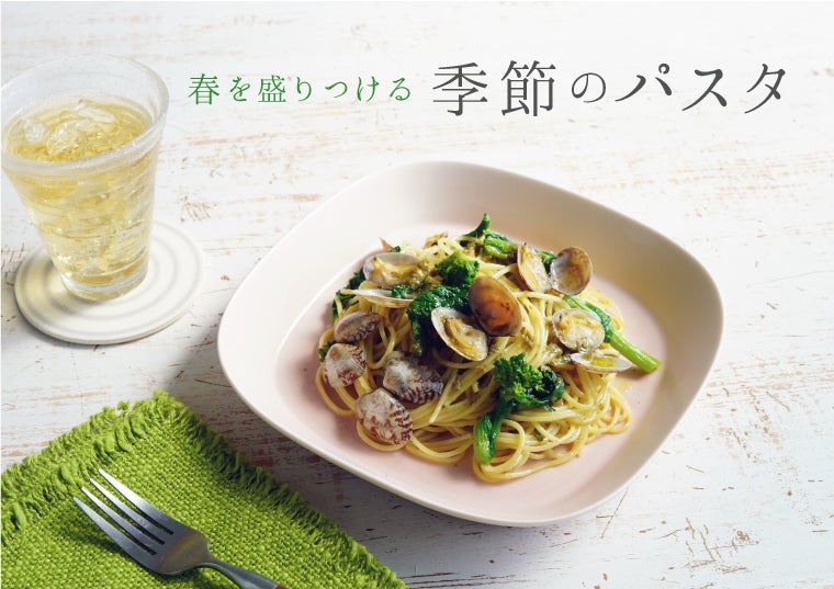 春らしい淡くやわらかな色合いのうつわに、旬の旨味がつまったあさりのパスタ。