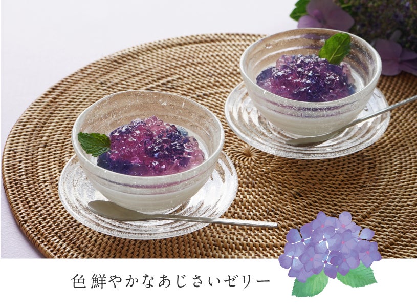 あじさいを思わせる紫色のゼリーがキラキラして、心が晴れやかに。