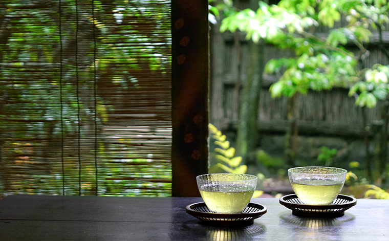 光線を和らげて風を招き、雨音や葉擦れを届かせる夏の建具は、五感の全てで涼しさを味わうための思想と工夫に溢れています。卓上のうつわを夏のものへと変えることも涼をよぶ工夫のひとつ。渡る風に注がれた冷茶が揺れるガラスの冷茶碗は夏の定番です。薄手の衣へ替えるように、室礼を夏のものにかえてゆく。合理的であるために絶えずつづけられてきたくらしの工夫は、空調とは異なる心地よい涼しさを今なお私たちに実感させてくれます。