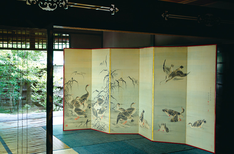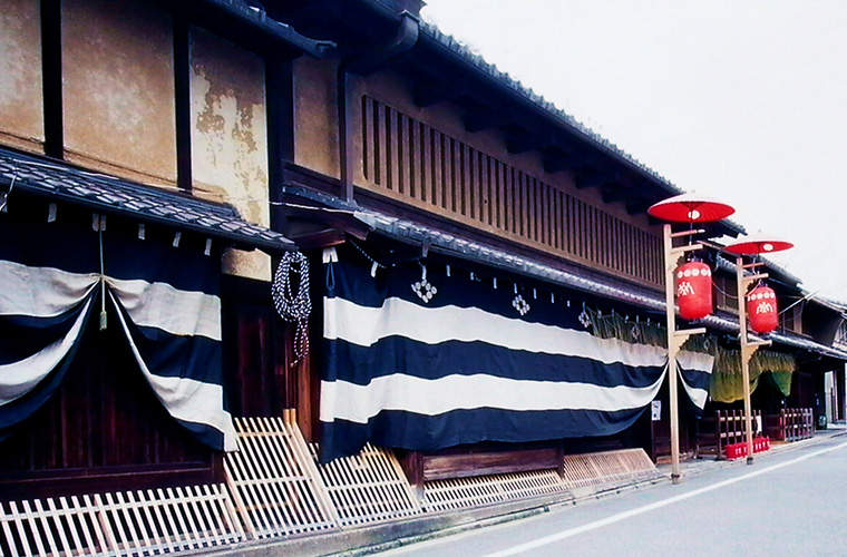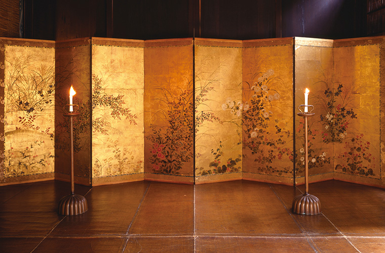 祇園祭は京の町が最も華やぐハレの行事です。大いににぎわう山鉾町の家々では、格子を外して道行く人々に所蔵する屏風を披露する「屏風祭り」が習わしとして行われていました。町家の減少とともに「屏風祭り」を行う家が少なくなるなか、杉本家はこの晴れやかな習わしを守り、受け継いできました。