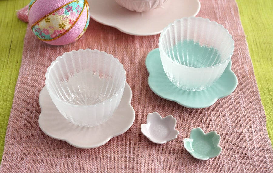 いろどり 梅 シリーズは、そのまま使っても可愛いですが、このように小鉢などの受け皿として使っても素敵。桜の箸置も豆皿として使えるので、一つのアイテムで複数の楽しみ方が広がります。