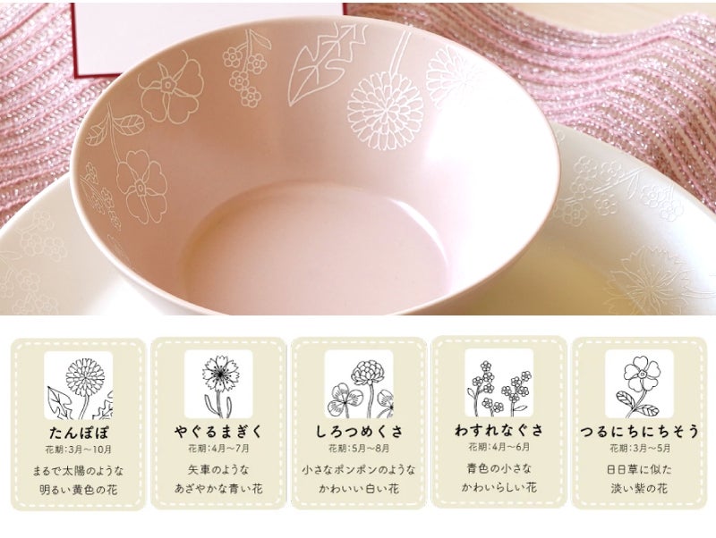 春から夏に向けて咲き始める可憐な花々をモチーフにした「花咲み(はなえみ)」シリーズは、食器をリサイクルして生まれた再生陶磁器。やさしい風合いのうつわの中に花が咲き、そして、食卓を囲んで笑顔があふれる。そんな時間を過ごしていただきたくて生まれたうつわです。
