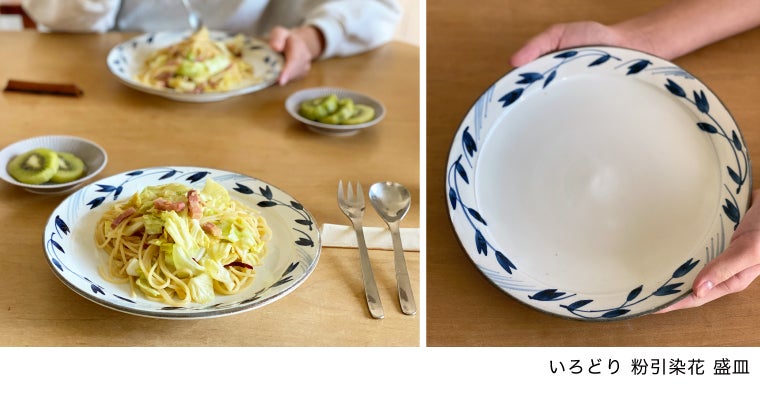 中鉢で使い勝手の良さを実感して、パスタやワンプレートに使いたいなと、この秋に買い足したのが盛皿。さっそくパスタ皿として使っていますが、日曜日の簡単なお昼ご飯も、なんだか美味しそうに! 丁寧な暮らしができているわけでもない、働くママの私としては、どちらかというとうつわがいろどりを足してくれたり、日常の料理がおいしく見えるのがその役目だと思っています。そんな私が自信を持ってオススメするシリーズです。陶器のうつわを初めて使いたいという方にも揃えやすいと思います。ぜひ、使ってみてくださいね。