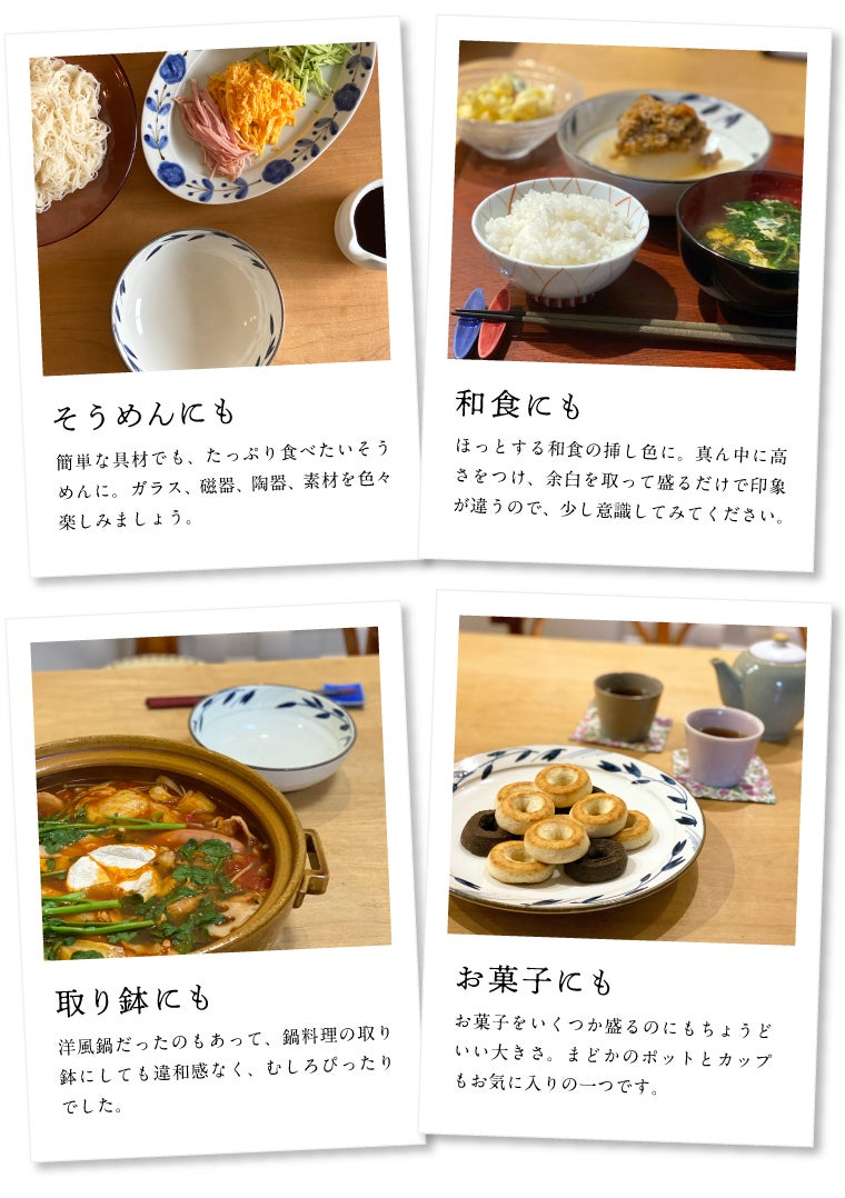 中鉢を発売当初から使っています。とにかく、たっぷり入る大きさだなというのが第一印象。ちょうど寒い時期だったので、ロールキャベツ、シチュー、鍋料理、おでんに始まり、夏にはそうめんの取り鉢にと、ついつい手がのびるうつわです。