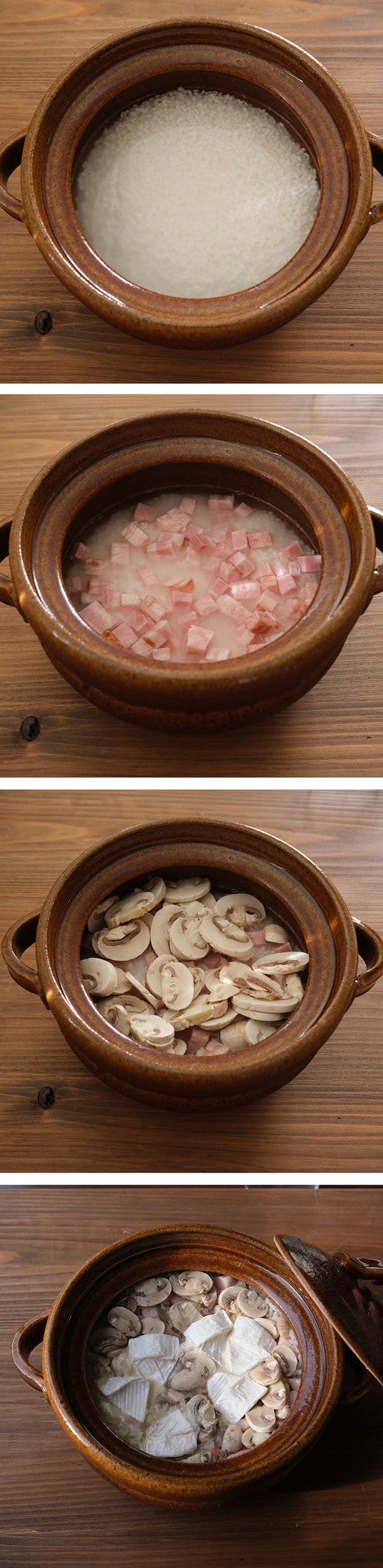 カマンベールとマッシュルームとベーコンの炊き込みご飯