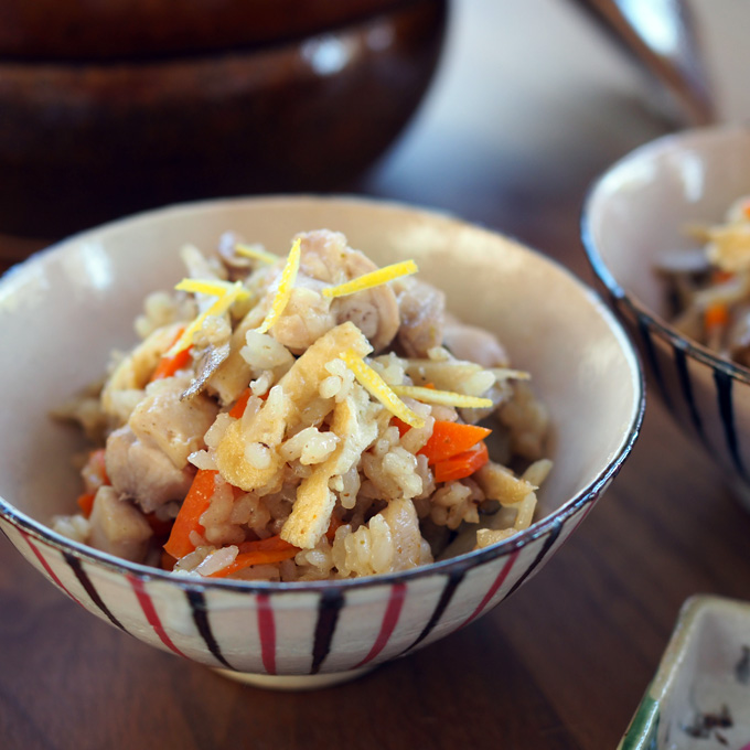 ゆず香る鶏肉と根菜の炊き込みごはん